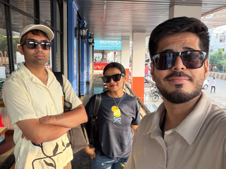 The same thing is applicable in landscape orientation. While I’ve managed to capture three people in the picture on the right, there’s space to accommodate three to four more people comfortably. From the same orientation, the camera can capture images in multiple aspect ratios, such as 16:9, 3:4, and 1:1, in both portrait and landscape orientations. And yes, this camera also powers the dynamic subject tracking feature in video calls on FaceTime.