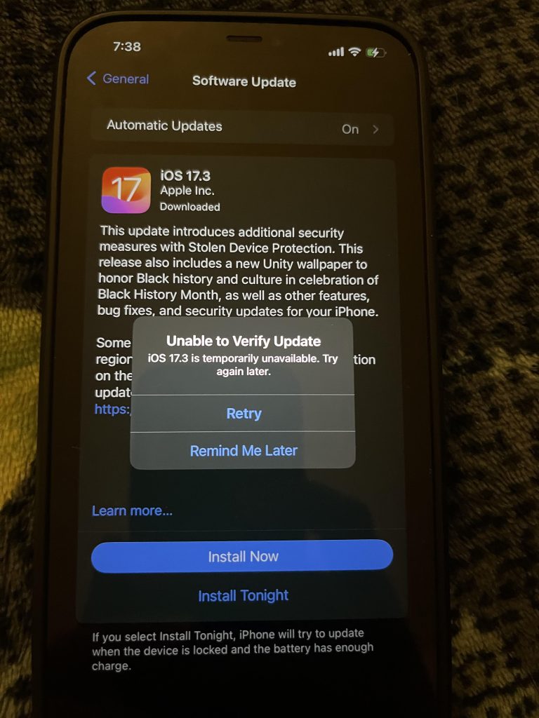 People have been taking it to the Apple Community and Reddit posting about how they are running into problems when trying to update to iOS 17.3. Some users reported getting a prompt that says “Unable to Verify Update” as in the pic below. Turns out hitting the “Retry” button doesn’t fix the issue as well as per Redditors. The question is, what’s next? What can you do to fix the problem on your iPhone? Here are some workarounds that have helped users although their effectiveness is subjective.