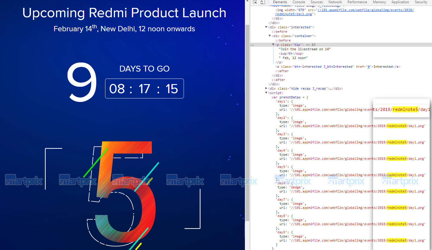 Redmi Note 5 spotted multiple times on the launch countdown page source code