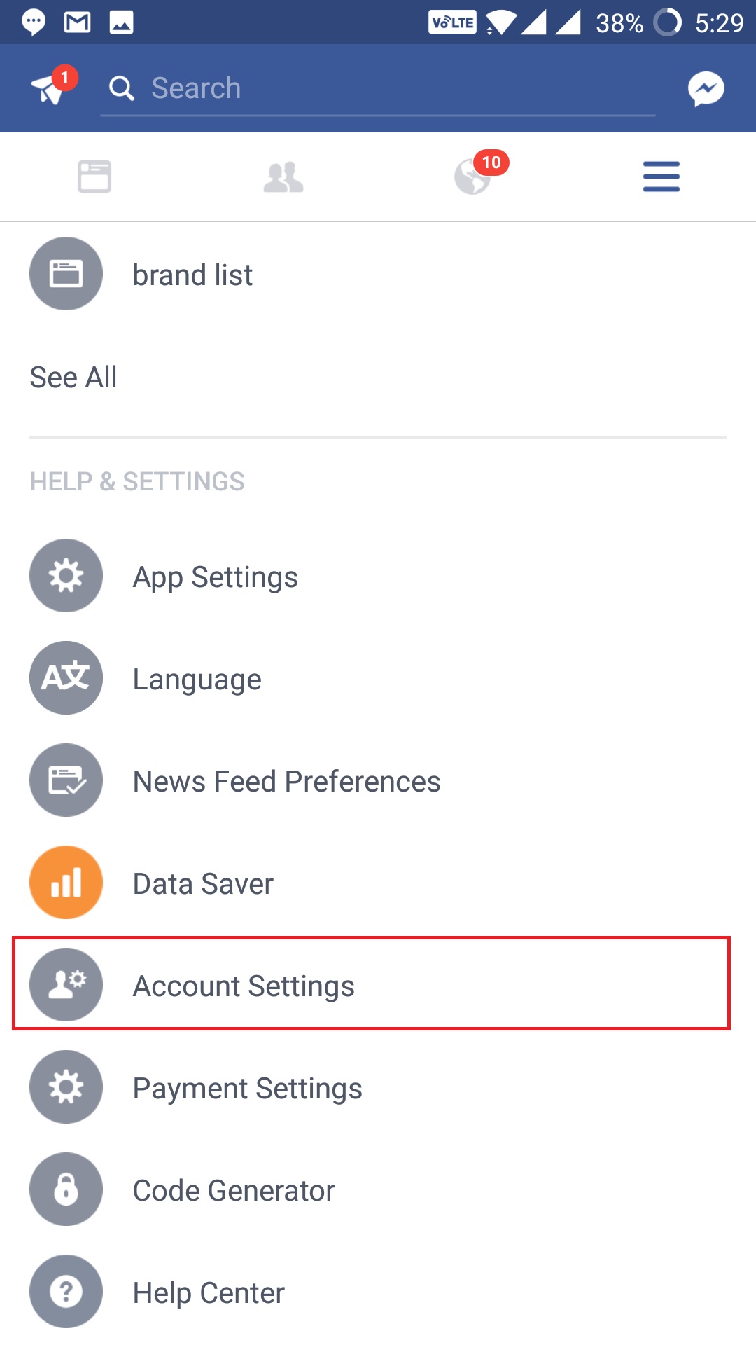 - सबसे पहले Facebook App खोलें और Settings में जाएँ
