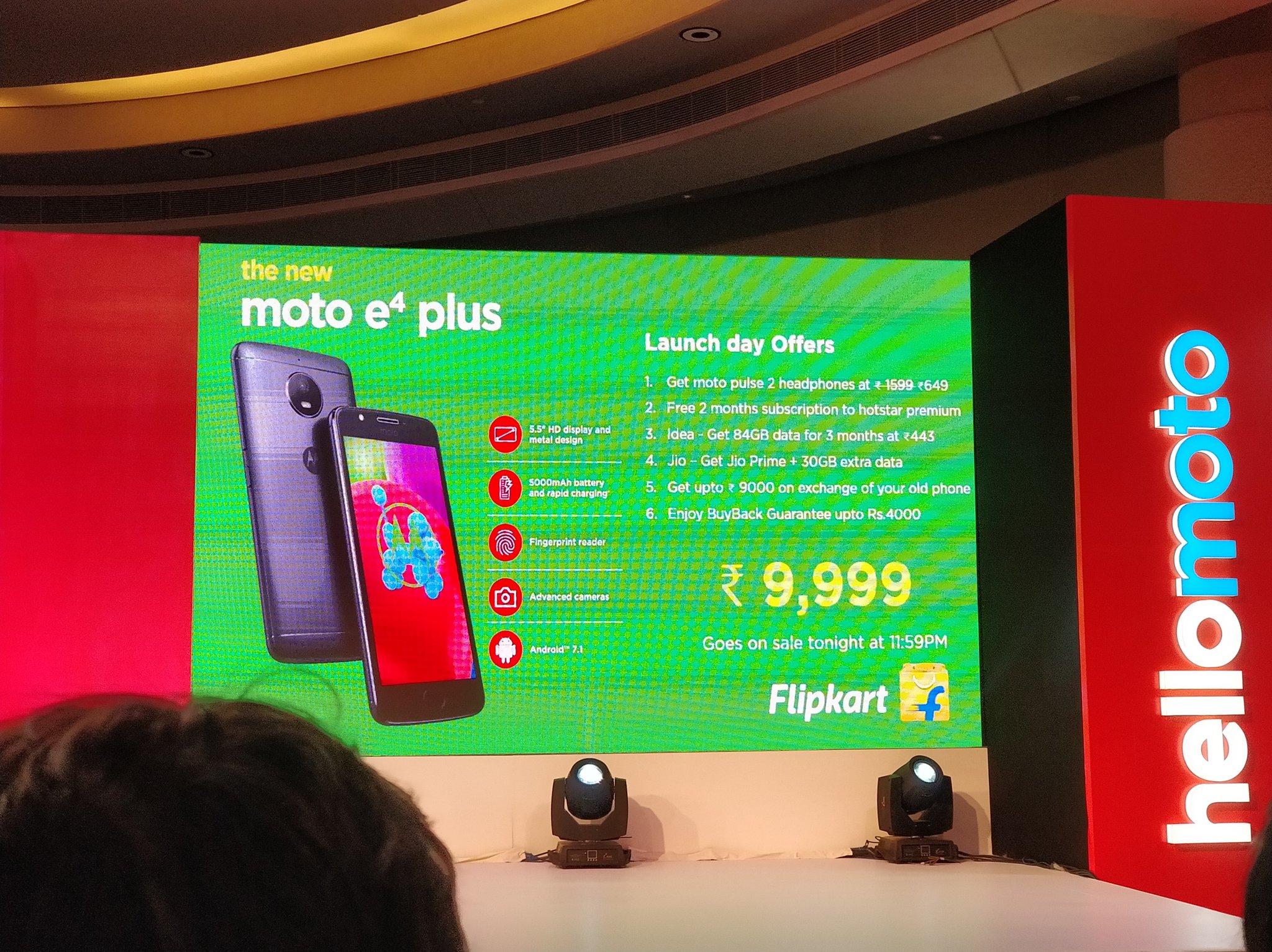 लेनोवो के स्वामित्व वाली लोकप्रिय स्मार्टफोन निर्माता कंपनी मोटोरोला ने आज अपने नए स्मार्टफोन Moto E4 Plus को भारत में लॉन्च कर दिया है। इस फोन की सबसे रोचक बात यह है कि कम बजट में बड़ी बैटरी देने वाला यह पहला स्मार्टफोन है। (Read in English)