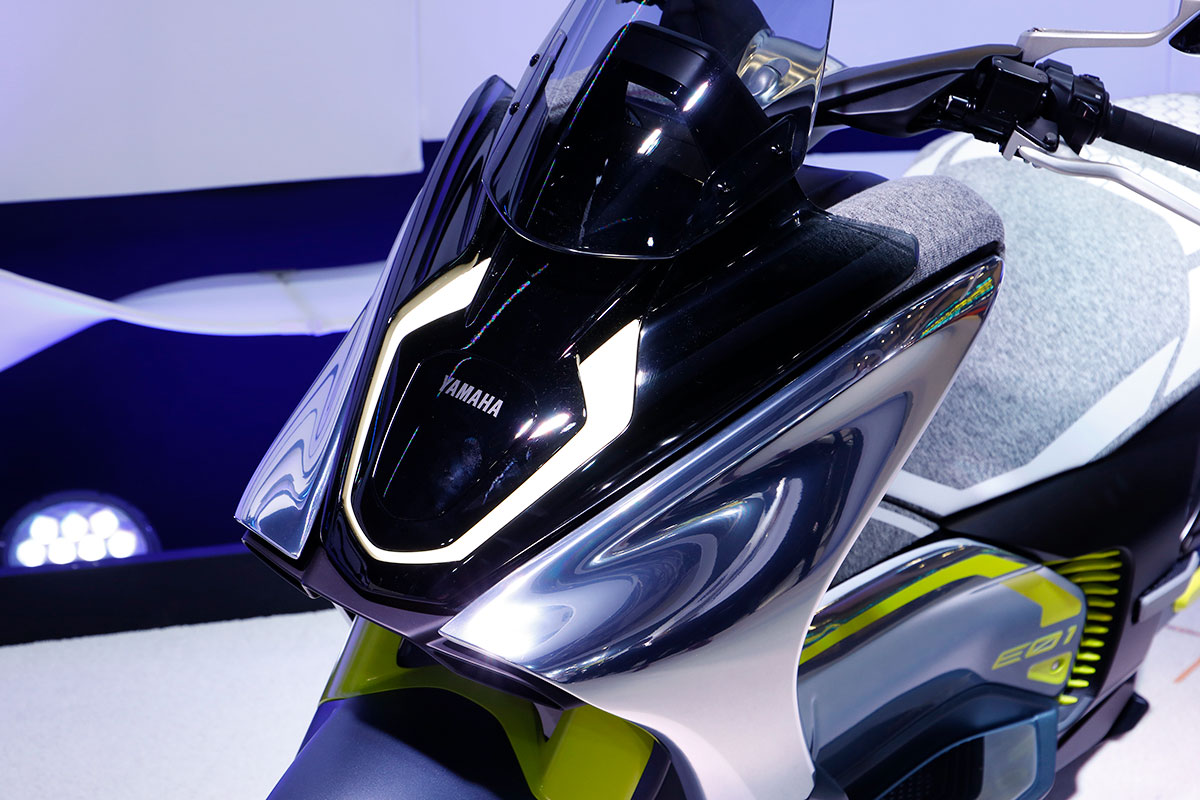 Yamaha E01 will be a maxi-style electric scooter with sporty design including dual LED head lamps, intriguing front face, wide and compact windscreen, single piece seat, and dual-tone paint.
