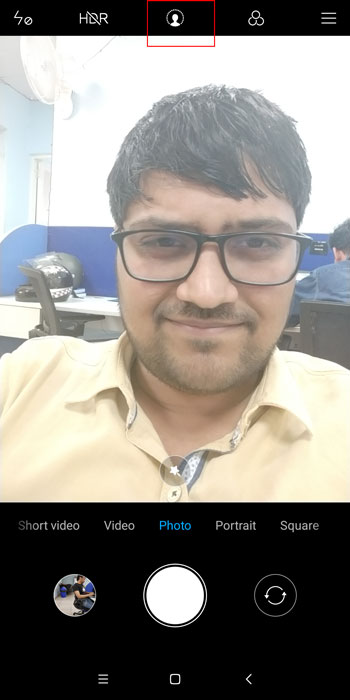 Portrait mode in selfies: The portrait mode option in the camera app takes you to the rear camera, even when you are shooting selfies. But Redmi Note 5 Pro also has portrait mode for selfies. To turn it on tap on the face icon in the middle of the top bar after switching to selfie camera.